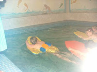 Dat hadden we niet meteen verwacht, maar wat kreeg Thom vandaag te horen? Van de juffen mocht Thom naar bad 3, maar na het zwemuurtje van vandaag vonden ze eigenlijk dat hij direct door mocht naar bad 4!! Thom heeft de schoolslag, vooral onder water en zonder kurk, helemaal te pakken. Deze oefenweek heeft dus zeker effect gehad. Vanaf volgende week vrijdag mag Thom het gaan proberen in badje 4. Op weg naar zijn A-diploma!! Tijdens de 'gewone' zwemles op vrijdagmiddag vroeg de zwemjuf zich af of Thom al zwemvliezen had gekregen...die zouden er nu vanzelf aan moeten groeien ;-)