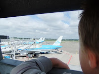 In Amsterdam komen we niet vaak, nu we er zijn gaan we ook even bij de vliegtuigen op Schiphol gluren.