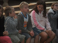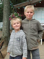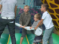 De dag begint druilerig en de vesten gaan aan (behalve bij Ivo...). Gelukkig vermaken de jongens zich prima bij de miniclub met de Olympische Spelen en 's avonds treedt er een theatergroepje op die 4 sprookjes naspeelt. Maakt niet uit dat het in het Frans is...de jongens vinden het prima!
