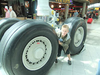 Een paar jaar geleden gingen we al eens vliegtuigen spotten in Eindhoven, nu kunnen we ze van nog dichterbij zien. Op Schiphol is er ook een stuk van een KLM vliegtuig neergezet waar we binnen kunnen gluren.