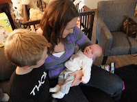 Vanmiddag zijn we even bij Lars op visite geweest. Lars en Sasha zijn vanaf vorige week woensdag weer thuis. Lars groeit als kool! Luuk spiekte over de wagenrand heen "Zijn buikje gaat op en neer" fluisterde Luuk...gelukkig maar ;-) Later kreeg Lars te horen dat hij een klein neusje had met kleine neusgaatjes...tjonge wat kinderen al niet opvalt.